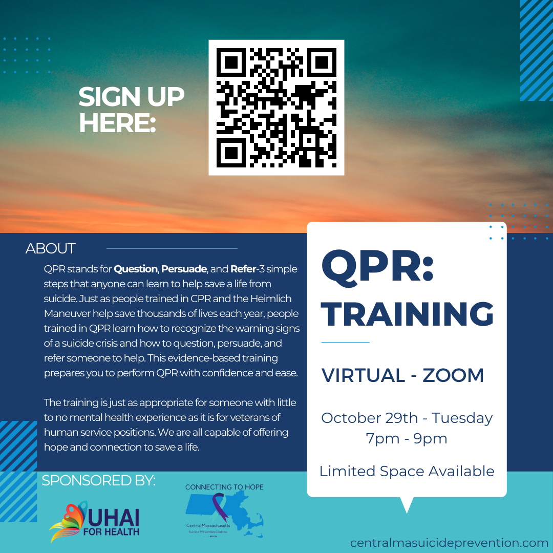 QPR Training with UHAI Health Tuesday, October 29, 2024 7:00 PM 9:00 PM Google Calendar ICS Register Here
